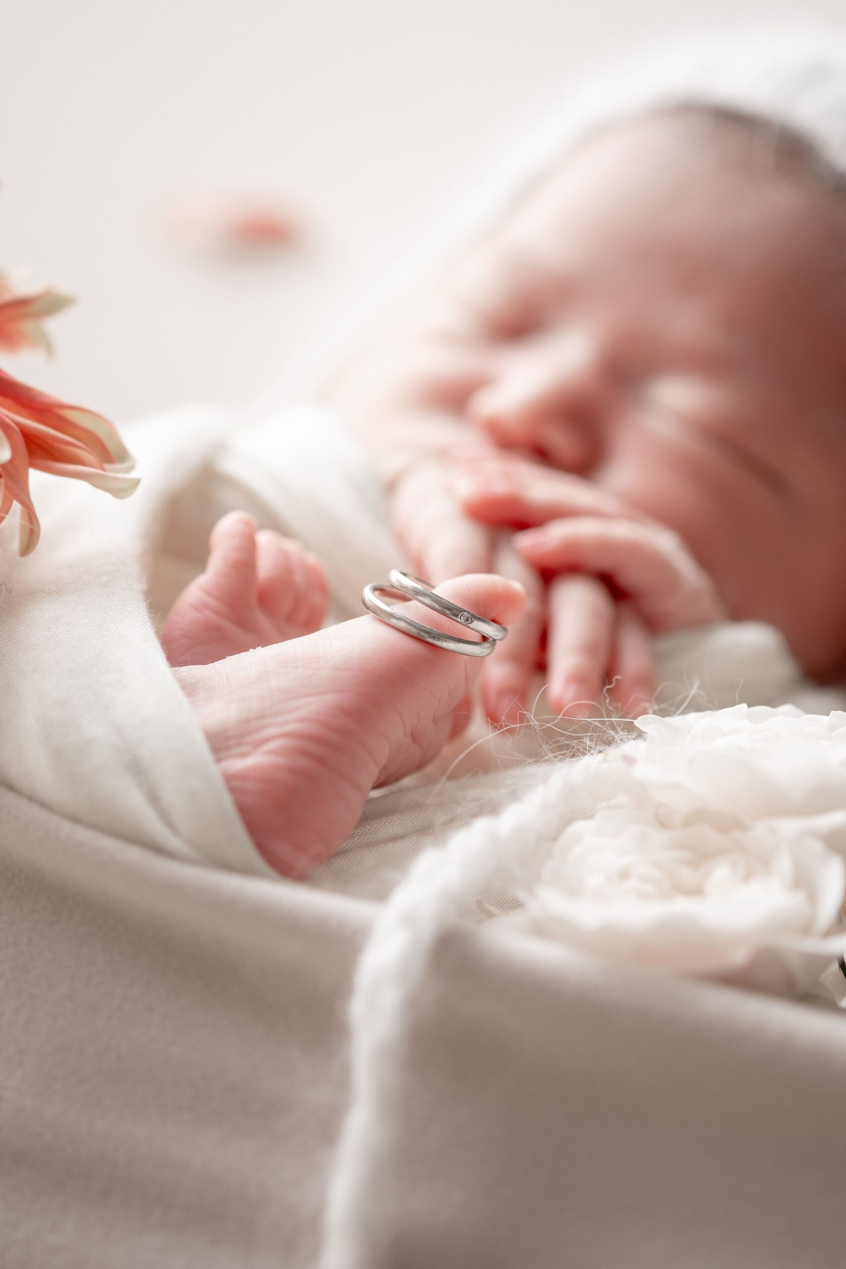 撮影準備、赤ちゃんの準備が整い次第撮影をスタート致します。新生児期の赤ちゃんは、約45分周期で「レム睡眠(浅い眠り)」と「ノンレム睡眠(深い眠り)」を繰り返します。そのため、寝つきが浅くなるタイミングで再度授乳をお願いする事がございます🍼