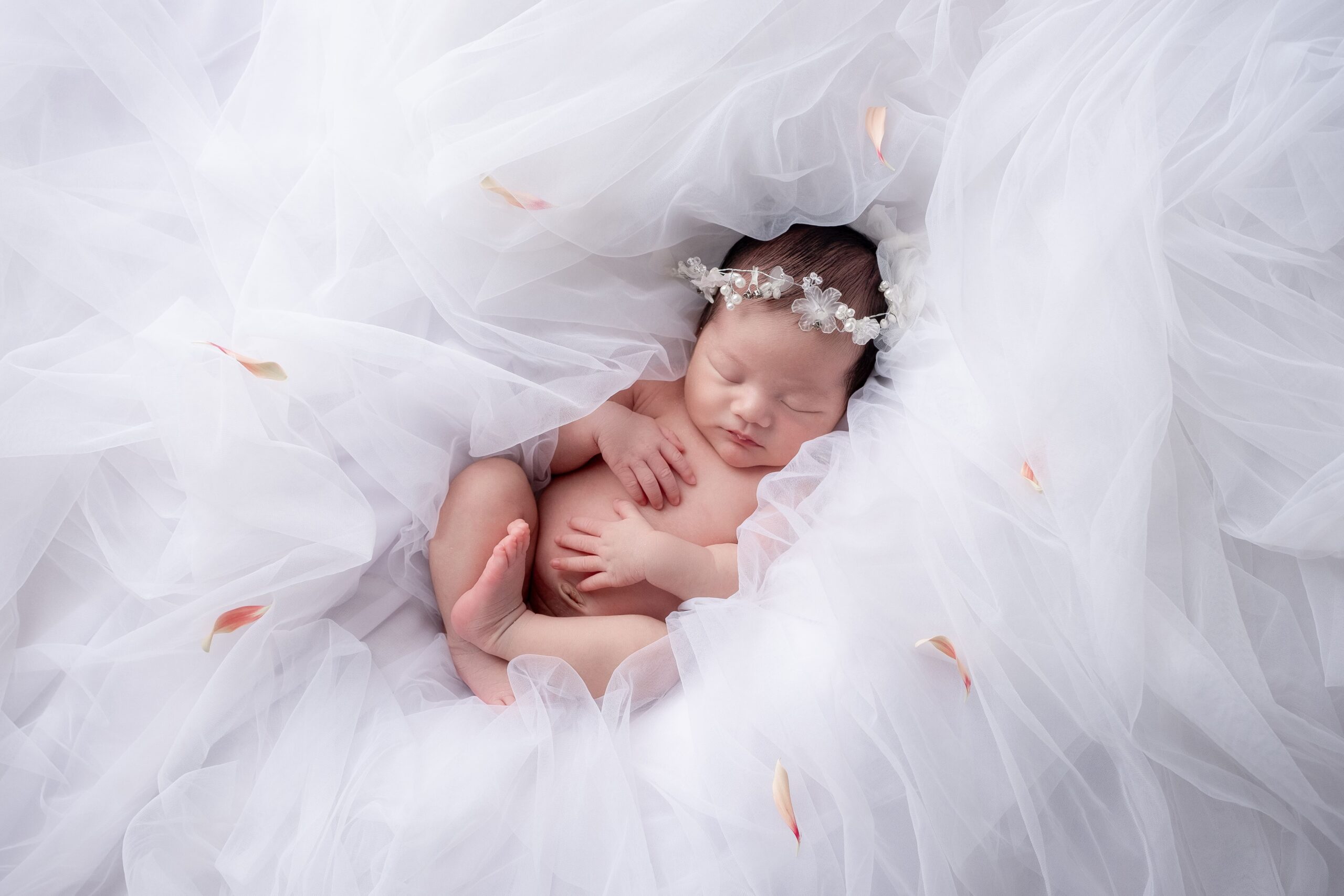 裸ん坊では、レースに花びらを散らして優しく赤ちゃんを包んでくれているようです🫧