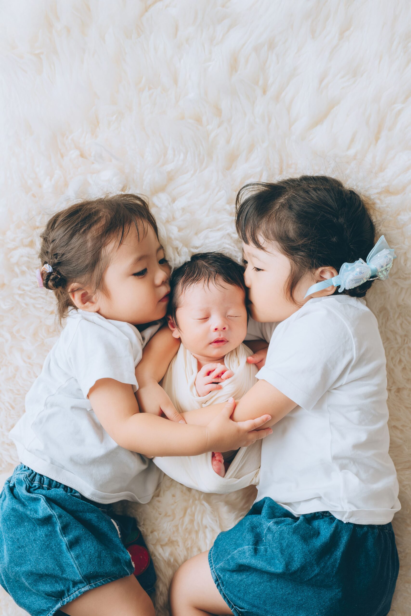 こんにちは🌼今回は生後11日目の男の子の撮影に行かせて頂きました👶🕊️✨家族写真ではふたりのお姉ちゃんに抱きしめられながら幸