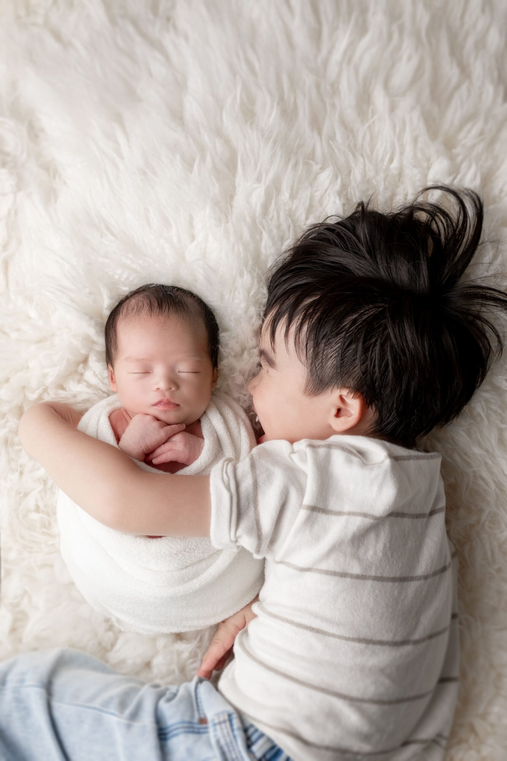 こんにちは🌼先日、生後7日目の女の子の撮影に行って来ました🫧今回はお兄ちゃんも一緒の撮影で、可愛い妹ちゃんが出来て、大切にギュッと抱きしめたり、